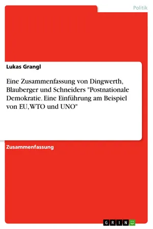 Eine Zusammenfassung von Dingwerth, Blauberger und Schneiders "Postnationale Demokratie. Eine Einführung am Beispiel von EU, WTO und UNO"