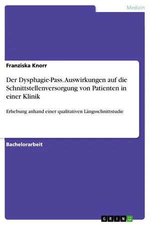 Bachelorarbeit aus dem Jahr 2016 im Fachbereich Gesundheit - Public Health, Note: 2, 0, Hamburger Fern-Hochschule, Sprache: Deutsch, Abstract: Schlucken ist ein komplexer, physiologischer Prozess, der für den Transport von Speichel, Flüssigkeit und Nahrung von Mundhöhle bis in den Magen zuständig ist. Dieser Ablauf ist für die meisten Menschen automatisiert, weshalb ihm kaum bis keine Aufmerksamkeit geschenkt wird. Allerdings gibt es auch zahlreiche Personen, deren Schluckakt aufgrund verschiedener Ursachen beeinträchtigt ist. Durch die zunehmende Bevölkerungsalterung in den nächsten Jahren wird neben einer stetigen Zunahme neurologischer Erkrankungen auch die Häufigkeit neurogener Dysphagien deutlich zunehmen. Im Hinblick dessen ist es umso essenzieller, die Prävention und Behandlung von Dysphagien zu optimieren, um negative Folgen, wie zum Beispiel eine Aspirationspneumonie, zu vermeiden. Hierbei spielt unter anderem die Schnittstellenversorgung von Patienten eine zentrale Rolle. Um der Versorgung von Dysphagie-Patienten und dem interdisziplinären sektorenübergreifenden Dysphagiemanagement gerecht zu werden, entwickelten Rittig und Jäger ein entsprechendes Kommunikationsmedium, den Dysphagie-Pass. Der Dysphagie-Pass stellt derzeit ein wenig verbreitetes und wenig erforschtes Interventionsmedium dar. Ziele, die der Dysphagie-Pass verfolgt, wie beispielsweise eine verbesserte Patientenversorgung, Optimierung von Kommunikation, Kooperation und Transparenz sowie Vermeidung von Informationsverlust und unnötiger Kosten sprechen zudem für die weitere Evaluation des Passes.Angesichts dargestellter Aspekte behandelt diese Bachelorarbeit das Kommunikationsmedium Dysphagie-Pass mit der Fragestellung, inwieweit sich eine Einführung des Dysphagie-Passes auf die Schnittstellenversorgung von Dysphagie-Patienten in einer Klinik auswirkt. Dieser Fragestellung wird mittels einer qualitativen Längsschnittstudie nachgegangen. Die Arbeit beinhaltet nach der Erläuterung des theoretischen Hintergrundes, die detaillierte Beschreibung des Dysphagie-Passes sowie die Skizzierung der Schnittstellenversorgung dysphagischer Patienten. Im empirischen Teil werden neben Ableitung der Forschungsfrage, das Studiendesign, die organisatorischen Rahmenbedingungen sowie der zeitliche Ablauf, die Auswahl und Akquise der Interview-Partner, die Entwicklung der Interview-Fragen und deren Auswertung beschrieben. Nach der Ergebnisbeschreibung behandelt die Arbeit den Aspekt der Methoden- und Ergebnisdiskussion.