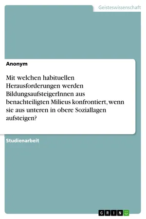 Studienarbeit aus dem Jahr 2018 im Fachbereich Sozialwissenschaften allgemein, Note: 1, 7, Fachhochschule Dortmund, Sprache: Deutsch, Abstract: In den letzten Jahren ist die Tendenz der Bildungsaufsteiger*innen in Deutschland gesunken. Trotzdem wird immer wieder der Spruch "Jeder ist seines Glückes Schmied" verwendet und sogar als gut gemeinter Ratschlag erteilt. Doch hängt der Bildungserfolg wirklich noch von der eigenen Leistungsbereitschaft ab? Oder "fällt der Apfel [doch] nicht weit vom Stamm"? In der Soziologie beschäftigen sich vor allem seit Bourdieus Erkenntnissen zum Sozialen Raum viele Wissenschaftler mit dieser Frage. Nicht selten werden dabei die Zusammenhänge zwischen der sozialen Herkunft und dem Bildungserfolg untersucht. Dabei liegt der Fokus oftmals auf Individuen, die sich zwischen höheren und niedrigeren Positionen bewegen, diese sozialen Auf- und Abstiege werden auch Soziale Mobilität genannt. Bereits im Jahr 2000 zeigten die Untersuchungen der internationalen Schulleistungsstudie PISA, dass ein Zusammenhang zwischen sozialer Herkunft und erworbenen Kompetenzen besteht. Das heißt, Kinder, deren Eltern einen hohen gesellschaftlichen Status aufweisen, erreichen in der Regel ein höheres Kompetenzniveau, als Kinder aus der Arbeiterklasse. Aber warum ist das so? Und kann angesichts dieser Tatsache dann überhaupt noch von Chancengleichheit im Bildungssystem gesprochen werden? Doch trotz der abfallenden Tendenz von Bildungsaufsteiger*innen, gibt es dennoch Menschen, die gegen alle Erwartungen einen Bildungsaufstieg von der unteren in die obere Schicht schaffen. Aber was passiert während des Aufstiegs mit der Persönlichkeit? Mit welchen habituellen Herausforderungen werden die Bildungsaufsteiger*innen während und nach dem Aufstieg konfrontiert? Ziel dieser Hausarbeit ist es, diese Fragen mithilfe der theoretischen Konzepte Pierre Bourdieus zu klären und beantworten. Dazu sollen im ersten Kapitel die wichtigsten Begriffe definiert werden. Daraufhin folgen die Kapitalsorten nach Bourdieu, die wichtig zu erläutern sind, um das nachfolgende Kapitel besser verstehen zu können. In dem Kapitel geht es um die Herausforderungen und Nebenwirkungen, mit denen es Bildungsaufsteiger*innen während und nach dem Aufstieg zu tun haben. Dabei habe ich mich sehr an der Literatur von Aladdin El-Mafaalani orientiert. Schlussendlich ist am Ende der Hausarbeit noch eine kurze Zusammenfassung zu finden.