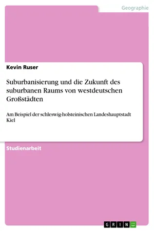 Studienarbeit aus dem Jahr 2016 im Fachbereich Geowissenschaften / Geographie - Bevölkerungsgeographie, Stadt- u. Raumplanung, Note: 1, 7, Christian-Albrechts-Universität Kiel, Sprache: Deutsch, Abstract: In dieser Arbeit soll zunächst der Prozess der Suburbanisierung genauer vorgestellt und der Begriff des suburbanen Raumes vor der Frage, was das Wohnen in der Vorstadt attraktiv macht, erklärt werden. Dabei soll erst die historische Entwicklung der Vorstadt beleuchtet werden, ehe am Beispiel der schleswig-holsteinischen Landeshauptstadt Kiel diese Erkenntnisse veranschaulicht und mit Zahlen hinterlegt werden. Abschließend sollen die aktuelle Situation aufgezeigt und so die Frage, wie sich die Vorstadt zukünftig entwickeln könnte, beantwortet werden.Der Prozess der Suburbanisierung als Teil des Stadtentwicklungsmodells lässt sich in westdeutschen, aber nordeuropäischen Großstädten seit den Nachkriegsjahrzehnten beobachten. Die Vorstadt, in den 1960er Jahren besonders beliebt bei jungen Familien mit dem Wunsch nach einem Eigenheim und dem "Wohnen im Grünen", entwickelte sich seit jeher weiter, sodass eine Ausweitung der Stadtfläche und immer stärkere Pendlerverflechtungen zu beobachten sind.