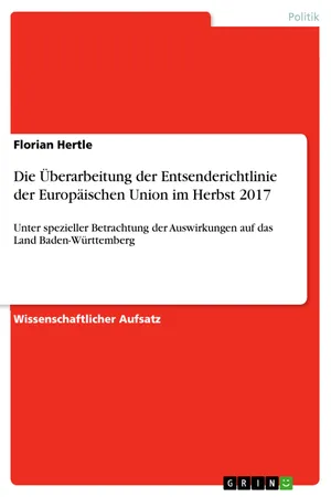 Wissenschaftlicher Aufsatz aus dem Jahr 2017 im Fachbereich Politik - Thema: Europäische Union, Note: 1, 1, Fachhochschule des Bundes für öffentliche Verwaltung Brühl - Fachbereich Allgemeine Innere Verwaltung, Sprache: Deutsch, Abstract: Ein wichtiges Thema in Brüssel im Herbst 2017 war die Überarbeitung der Entsenderichtlinie durch die EU-Institutionen, die sowohl aus wirtschafts- sowie arbeitsmarktpolitischen Gesichtspunkten eine enorme Bedeutung hat. Zunächst wird die Problemstellung, die sich bei der Änderung der Entsenderichtlinie stellt aufgezeigt und auf die Änderungen, die die neue Entsenderichtlinie mit sich bringt eingegangen. Abschließend wird die Lösungsfindung für die Probleme aufgezeigt, ein Fazit gezogen und ein Ausblick auf zukünftige Entwicklungen gegeben.