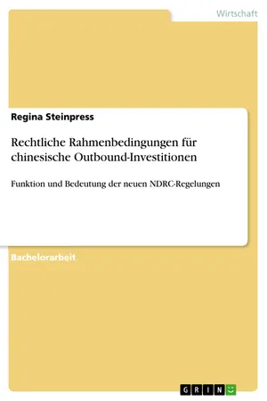 Bachelorarbeit aus dem Jahr 2019 im Fachbereich BWL - Wirtschaftspolitik, Note: 1, 0, Universität zu Köln, Sprache: Deutsch, Abstract: Im Rahmen dieser Abschlussarbeit soll beantwortet werden, welche Änderungen die neuen NDRC-Regelungen mit sich bringen und welche Auswirkungen diese auf die chinesischen Outbound-Investitionen haben. Dafür werden die rechtlichen Rahmenbedingungen für die Überprüfung von chinesischen Outbound-Investitionen zunächst vorgestellt. In diesem Kontext werden anhand einer Analyse der Änderungen die Funktion und die Bedeutung der NDRC-Regelungen abgeleitet.Im Laufe dieser Abschlussarbeit wird auch aufgezeigt werden, inwiefern die neuen NDRC- Regelungen mit der Belt and Road-Strategie verknüpft sind und ob sich daraus eine Instrumentalisierung der Outbound-Investitionen für makroökonomische Ziele ergeben kann. Dafür werden zunächst die bisherigen Entwicklungen der chinesischen Outbound-Investitionen im Zusammenhang mit politischen Zielsetzungen betrachtet. Nach der Vorstellung der zuständigen Regierungsbehörden und der relevanten Richtlinien für die Überprüfung von Outbound-Investitionen werden die neuen Regelungen der NDRC unter Bezugnahme auf die bedeutendsten Änderungen veranschaulicht. Im Anschluss werden die Änderungen hinsichtlich ihrer möglichen Auswirkungen auf chinesische Outbound-Investitionen betrachtet. Das Fazit dieser Abschlussarbeit fasst zusammen, welche Funktion die neuen NDRC- Regelungen, in den Kontext rechtlicher Rahmenbedingungen für chinesische Outbound-Investitionen gesetzt, für die Entwicklung der Outbound-Investitionen haben werden.Laut der jüngsten Prognose des Weltwirtschaftsforums werden die Outbound-Investitionen chinesischer Unternehmen in den nächsten zehn Jahren 2, 5 Billionen USD erreichen. Angesichts der Tatsache, dass das Outbound-Investmentvolumen im Jahr 2016 ein Rekordhoch von 196, 2 Mrd. USD erreicht hat, im Folgejahr 2017 jedoch wieder auf 120 Mrd. USD gesunken ist, stellt sich die Frage, welche Faktoren diese Entwicklungen beeinflusst haben. Für eine bessere Einschätzung des Einflusses der rechtlichen Rahmenbedingungen auf chinesische Outbound-Investitionen bedarf es einer genaueren Betrachtung. Eine wesentliche Rolle für das Regulierungssystem Chinas für Outbound-Investitionen spielt dabei die Staatliche Kommission für Entwicklung und Reform (National Development and Reform Commission, kurz: NDRC), die zum 1.3.2018 neue Regelungen für chinesische Outbound- Investitionen eingeführt hat.