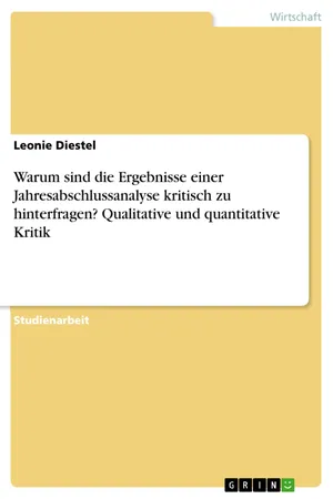 Ja, du hast Zugang zu Warum sind die Ergebnisse einer Jahresabschlussanalyse kritisch zu hinterfragen? Qualitative und quantitative Kritik von Leonie Diestel im PDF- und/oder ePub-Format. Aus unserem Katalog stehen dir über 1 Million Bücher zur Verfügung.