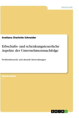 Masterarbeit aus dem Jahr 2019 im Fachbereich BWL - Rechnungswesen, Bilanzierung, Steuern, Note: 1, 7, Universität Hamburg, Sprache: Deutsch, Abstract: Die vorliegende Arbeit beschäftigt sich mit den erbschaft- und schenkungsteuerlichen Aspekten der Unternehmensfolge. Aufgrund der aktuellen Relevanz der Erbschaftsteurreform von 2016 liegt das Augenmerk dabei insbesondere auf den geschaffenen gesetzlichen Neuregelungen und auf die damit verbunden Problembereiche. Es werden ausgewählte Probleme der Unternehmensnachfolge besprochen, da eine weitergehende Diskussion den Rahmen dieser Arbeit sprengen würde.Die demographische Entwicklung in Deutschland ist dafür verantwortlich, dass immer mehr Unternehmer das Ruhestandsalter erreichen. Da die überwiegende Anzahl der deutschen Unternehmen familiengeführt (91% aller aktiven Unternehmen) bzw. eigentümergeführt (87% aller aktiven Unternehmen) sind, sind die Nachfolgeregelungen bei Unternehmensübergaben von besonderer Relevanz. An erster Stelle soll der Fortbestand dieser Unternehmen, die einerseits einen Großteil der Arbeitnehmer beschäftigen und anderseits einen wesentlichen Beitrag zu Bruttoinlandsprodukt leisten (49% des Ge-samtumsatzes aller Unternehmen im Jahr 2015), gesichert werden. Unterstrichen wird die Aktualität dieser Thematik durch die wachsende Anzahl der zur Übergabe stehen-den Unternehmen.