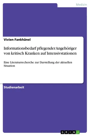 Studienarbeit aus dem Jahr 2018 im Fachbereich Gesundheitswissenschaften - Gesundheitspädagogik, Note: 1, 0, Hochschule Deggendorf, Sprache: Deutsch, Abstract: Wird ein Mensch auf Intensivstation aufgenommen, geschieht dies meist plötzlich und unerwartet. Diese Situation stellt für den Patienten und seine Angehörigen eine Extremsituation dar. Gerade in der Anfangsphase sind Familienangehörige verunsichert. Sie benötigen Informationen, um besser mit dieser Situation umgehen zu können. Aus diesem Grund ist das Ziel dieser Arbeit einen besseren Überblick über den Informationsbedarf von Angehörigen darzustellen.Als Methode wurde eine Literaturrecherche in den elektronischen Datenbanken sowie einer Zeitschrift für Intensivpflege gewählt. Die Ergebnisse zeigen, dass Angehörige reichlich Informationen von Pflegenden bekommen können. Sie benötigen Gewissheit über eine gute Versorgung, sie möchten über alles informiert werden und ihrem geliebten Menschen stets nah sein wollen. Die Pflegekraft kann als Schnittstelle zwischen dem Patienten und seiner Familie gesehen werden. Langfristig gesehen hat das Intensivpersonal für eine adäquate Angehörigenbetreuung noch einen erheblichen Schulungsbedarf. Pflegende sehen die Betreuung der Familie immer noch als einen Zusatz zu ihrer eigentlichen Arbeit.Auf modernen Intensivstationen werden Patienten mit sehr komplexen Krankheitsbildern behandelt, die sich in einer kritischen Lebenssituation befinden. Besendorfer erklärt, dass der Intensivaufenthalt in einer engen Verbindung mit einer lebensbedrohlichen Situation für den Patienten zusammenhängt und, dass dieser Umstand oftmals unvorhersehbar und plötzlich eintritt. Jährlich werden deutschlandweit etwa 2.000.000 Menschen auf Intensivstationen in Krankenhäusern versorgt. 2016 gab es 1.951 Krankenhäuser in Deutschland, davon 1.172 mit der Möglichkeit der intensivmedizinischen Versorgung. Bei 2.162.221 Behandlungsfällen auf den Intensivstationen lagen 425.777 Behandlungen mit einer maschinellen Beatmung im Rahmen intensivtherapeutischer Betreuung vor.