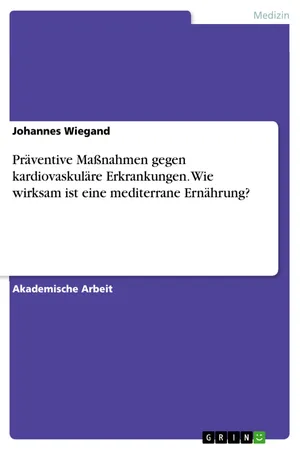 Akademische Arbeit aus dem Jahr 2018 im Fachbereich Gesundheit - Ernährungswissenschaft, Note: 2, 3, Hochschule Fulda (University of Applied Sciences), Veranstaltung: Evidenzbasierung in der Prävention und Gesundheitsförderung, Sprache: Deutsch, Abstract: Im Rahmen der vorliegenden Arbeit soll ermittelt werden, welche Auswirkung eine mediterrane Ernährungsweise auf kardiovaskuläre Krankheiten hat. Zur Lösung der Studienfrage wird ein systematisches Review, eine quantitative und eine qualitative Studie herangezogen. Die Studien werden auf ihre Qualität hin mit Hilfe von geeigneten Bewertungsbögen beurteilt. Zu allen von anderen Quellen verwendeten Informationen sind Literaturhinweise vorhanden. Laut der World Health Organisation (WHO) sind kardiovaskuläre Erkrankungen (CVD) mit 17, 5 Millionen der jährlich 56 Millionen Todesfällen, die häufigste Todesursache weltweit. Somit stirbt fast jeder dritte Mensch an einer kardiovaskulären Krankheit. Alleine in Deutschland belaufen sich die Krankheitskosten für Herz-Kreislauf-Erkrankungen auf etwa 47 Milliarden Euro jährlich. So sind kardiovaskuläre Erkrankungen die größte Belastung für das deutsche Gesundheitswesen. Nach der kurzen Einführung in das Thema vorliegende Arbeit beschäftigt sich zunächst mit dem systematischen Review "Effects of the Mediterranean Diet on Cardiovascular Outcomes—A Systematic Review and Meta-Analysis" von Hillis et al. (2016), welches bezüglich des Inhaltes und der Ergebnisse dargestellt wird und mithilfe der AMSTAR- Bewertung auf Qualitätsmerkmale untersucht wird. Im zweiten Teil der Arbeit wird die Primärstudie, "Primary Prevention of Cardiovascular Disease with a Medi-terranean Diet'" von Aros et al. (2013) vorgestellt und verschiedenen Bewertungskriterien aus Checklisten unterzogen. Schließlich wird die qualitative Studie "Barriers to adopting a Mediterranean diet in Northern European adults at high risk of developing cardiovascular disease" von Appleton et al. aus dem Jahr 2017 inhaltlich dargestellt, anhand passender Instrumente bewertet und die Ergebnisse vorgestellt.Zuletzt erfolgt eine Diskussion über die Konsequenzen der gewonnenen Erkenntnisse durch die drei Studien bezüglich der Bevölkerung und des Gesundheitswesens.
