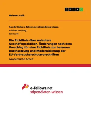 Akademische Arbeit aus dem Jahr 2019 im Fachbereich Jura - Europarecht, Völkerrecht, Internationales Privatrecht, Note: 11, 5, Johann Wolfgang Goethe-Universität Frankfurt am Main, Veranstaltung: Schwerpunktbereich Internationalisierung und Europäisierung, Sprache: Deutsch, Abstract: Die Arbeit befasst sich mit Art. 1 der Richtlinie zur besseren Durchsetzung und Modernisierung der EU-Verbraucherschutzvorschriften. Art. 1 sieht mehrere Änderungen der Richtlinie über unlautere Geschäftspraktiken 2005/29/EG (UGP-RL) vor. Neben Änderungen der materiell-rechtlichen Vorschriften sieht Art. 1 auch Änderungen im Hinblick auf die Rechtsdurchsetzungsvorschriften vor. Die Arbeit konzentriert sich auf Letztere und erläutert, welche Änderungen Art. 1 für die UGP-RL mit sich bringt und welche Vorgaben hieraus für den deutschen Gesetzgeber resultieren. Die Änderungen der Rechtsdurchsetzungsvorschriften betreffen zum einen die Einführung von Individualrechtsbehelfen für Verbraucher bei Verstößen gegen die UGP-RL. Zum anderen betreffen die Änderungen die Vorschriften, welche Sanktionen bei Verstößen gegen die UGP-RL enthalten.