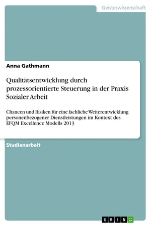 Studienarbeit aus dem Jahr 2019 im Fachbereich Soziale Arbeit / Sozialarbeit, Note: 1, 0, Hochschule Niederrhein in Mönchengladbach, Veranstaltung: Qualitätsmanagement, Sprache: Deutsch, Abstract: In dieser Hausarbeit möchte ich zunächst die zentralen Begriffe der Fragestellung definieren. Insbesondere die Begriffe Qualitätsentwicklung, Prozess, Prozessorientierung und personenbezogene Dienstleistungen möchte ich vorab erläutern. Danach möchte ich abwägen, ob der Begriff personenbezogene Dienstleistung für die Soziale Arbeit passend ist, oder ob eine andere Bezeichnung sinniger ist.Im nächsten Abschnitt untersuche ich das EFQM-Modell auf Chancen und Risiken für eine fachliche Weiterentwicklung personenbezogener Dienstleistungen durch prozessorientierte Steuerung. Im darauffolgenden Kapitel stelle ich die prozessorientierte Steuerung in Bezug zur Sozialen Arbeit. Ich stelle die Besonderheiten der Sozialen Arbeit in Bezug auf QM vor und gehe dann auf Chancen und Risiken für eine fachliche Weiterentwicklung in der Sozialen Arbeit durch prozessorientierte Steuerung ein. Im Folgenden erarbeite ich, wie wirksame Qualitätskriterien für die Soziale Arbeit entwickelt werden können. Abschließend ziehe ich ein Fazit, bei dem ich mich auf die Kernelemente des EFQM beziehe.