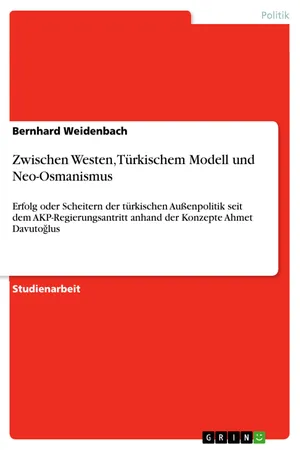 Studienarbeit aus dem Jahr 2015 im Fachbereich Politik - Sonstige Themen zur Internationalen Politik, Note: 1, 3, Europa-Universität Viadrina Frankfurt (Oder) (Kulturwissenschaftliche Fakultät), Veranstaltung: Außenbeziehungen der EU, Sprache: Deutsch, Abstract: Traditionell war die türkische Außenpolitik von einer Westorientierung charakterisiert. Unter der AKP bestimmte eine stärkere Multidimensionalität und Diversifizierung der Allianzen außerhalb des Westens die türkische Außenpolitik. Die Arbeit untersucht die programmatische Grundlage der türkischen Außenpolitik, insbes. unter Bezugnahme auf das Werk "stratejik derinlik" des damaligen Ministerpräsidenten Ahmet Davuto?lu, die Umsetzung der neuen Außenpolitik seit Beginn des AKP-Regierungsantritts, des möglichen Vorhandenseins eines "türkischen Modells" für die Region, sowie das potentielle Scheitern der Außenpolitik.