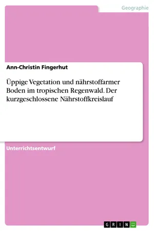 Unterrichtsentwurf aus dem Jahr 2015 im Fachbereich Didaktik - Geographie, Note: 1, Veranstaltung: Referendariat, Sprache: Deutsch, Abstract: Das Unterrichtsvorhaben "Der Tropische Regenwald" wird durch den Kernlehrplan Erdkunde für die Sekundarstufe I legitimiert. Die Unterrichtsreihe kombiniert zwei Inhaltsfelder und deren Schwerpunkte miteinander. Als zentrale Aufgabe des Faches bildet die Vermittlung einer raumbezogenen Handlungskompetenz den Überbau der Unterrichtsreihe. Die SuS sollen im Rahmen des Geographieunterrichtes zur verantwortungsbewussten Teilhabe am gesellschaftlichen Leben befähigt werden – raumbezogene Handlungskompetenz soll gefördert werden. Dieser Leitgedanke bildet neben der Legitimation durch den Kernlehrplan die Grundlage für die vorliegende Unterrichtsreihe. Sie sollen die naturgeographischen, ökologischen und sozioökonomischen Strukturen sowie deren Prozesse ausgewählter Räume in der tropischen Zone lebensweltbezogen kennenlernen. Die kritische Auseinandersetzung mit der wirtschaftlichen Nutzung der Regenwaldgebiete, deren Zerstörung und der globalen Folgen, fördert die Bildung eines persönlichen Standpunktes im Sinne der Nachhaltigkeit.