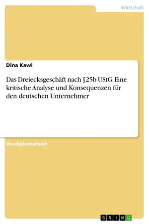 Im ersten Teil wird das i.g. Dreiecksgeschäft als Sonderform eines Reihengeschäfts definiert. Zudem wird auf Grundlagen des Reihengeschäfts, allgemeine Bestimmungen hinsichtlich der Ortsbestimmung der Lieferungen sowie auf die Zuordnung der bewegten Lieferung im Reihengeschäft eingegangen. Darauf folgt die detaillierte Darstellung von Umsatzgeschäften im Rahmen des i.g. Dreiecksgeschäfts. Im zweiten Teil wird der Zweck der Vereinfachungsregelung anhand eines Beispiels erläutert, indem die umsatzsteuerlichen Rechtsfolgen für die beteiligten Unternehmer in einem i.g. Dreiecksgeschäft ohne des §25b UStG dargestellt werden. Im dritten Teil werden die Voraussetzungen des §25b UStG für das Vorliegen des i.g. Dreiecksgeschäfts erläutert. Danach werden die Rechtsfolgen für die beteiligten Unternehmer im i.g. Dreiecksgeschäft unter Anwendung der Vereinfachungsregelung veranschaulicht. Schließlich wird innerhalb einer Untersuchung verdeutlicht, welche Konsequenzen für einen deutschen Unternehmer aus dieser Regelung resultieren, wenn er jeweils als erster Unternehmer, erster Abnehmer (mittlerer Unternehmer) und letzter Abnehmer in einem i.g. Dreiecksgeschäft auftritt. Abschließend wird die Regelung zum i.g. Dreiecksgeschäft in einem Fazit analysiert.
