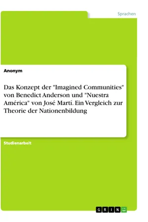 Studienarbeit aus dem Jahr 2019 im Fachbereich Romanistik - Hispanistik, Note: 1, 3, Eberhard-Karls-Universität Tübingen, Sprache: Deutsch, Abstract: Diese Arbeit zielt darauf ab, Benedict Andersons Buch "Imagined Communities - Reflection on the Origin and Spread of Nationalism" von 1983 im Hinblick auf seine Theorie der Nationenbildung zu analysieren. Anderson definiert die Nation als eine imaginäre, souveräne und begrenzte politische Gemeinschaft.Die Ergebnisse dieser Analyse werden mit den literarischen Strategien verglichen, die José Martí in seinem Aufsatz "Unser Amerika" von 1891 anwendet, um das staatsbürgerliche Bewusstsein der lateinamerikanischen Völker und Nationen in ihrem Kampf gegen den Einfluss der Vereinigten Staaten in Lateinamerika zu stärken. Es stellt sich heraus, dass es einige Parallelen gibt zwischen den Gründen für die Gründung einer Nation, die Anderson auf wissenschaftliche, globale und retrospektive Weise unterschieden hat, und den literarischen Techniken, die Martí zur Bildung eines vereinten Lateinamerikas einsetzte.
