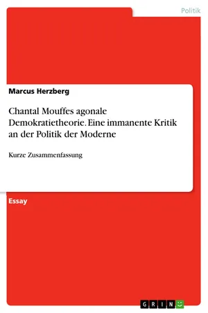 Essay aus dem Jahr 2019 im Fachbereich Politik - Grundlagen und Allgemeines, Note: 1, 3, Universität Duisburg-Essen (Politikwissenschaften), Veranstaltung: Seminar Demokratietheorien, Sprache: Deutsch, Abstract: Was immanente Kritik im Speziellen bedeutet und wie sich dies in einen radikalen Diskurs niederschlägt, wird im folgenden näher beleuchtet. Chantal Mouffe erörtert in ihrer Diskurstheorie Bedingungen demokratischer Politik in der Moderne. Sie versucht die Frage zu beantworten, wie Gruppen, Identitäten und Probleme im fortwährenden politischen Prozess Teilhabe zu einem integrativen Bestandteil machen können. Dabei spricht sie den Mangel an, dass sich die konstitutiven Prinzipien "Freiheit und Gleichheit für alle" noch nicht erfolgreich im praktischen Leben bestehender Gesellschaften entfaltet und durchsetzt haben. Um diesem Ziel näher zu kommen, beansprucht die Linke nach Auffassung der Autorin eine "radikale und plurale Demokratie" des Konfliktes.