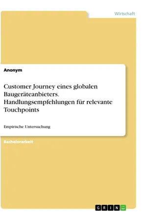 Bachelorarbeit aus dem Jahr 2019 im Fachbereich BWL - Offline-Marketing und Online-Marketing, Note: 1, 0, FOM Hochschule für Oekonomie & Management gemeinnützige GmbH, München früher Fachhochschule, Sprache: Deutsch, Abstract: Diese Arbeit hat das Ziel, eine Untersuchung zur Customer-Journey mit Fokus auf die ausgewählte Persona "Geschäftsführer groß" zur Ableitung von Handlungsempfehlungen relevanter Touchpoints durchzuführen. Die folgenden Forschungsfragen werden beantwortet: Wie relevant sind die vorhandenen Touchpoints in der Customer Journey von Wacker Neuson in der deutschen Bauwirtschaftsbranche? Wie können diese gezielter weiterentwickelt werden? Zur Ergebnisfindung werden deutsche Großkunden via Experteninterviews befragt, die im Rahmen einer empirischen Untersuchung die Grundsteine für die Beantwortung der Forschungsfrage darstellen. Im Anschluss der Einleitung folgt ein einführender Theorie- und Definitionsteil, welcher von einem nachfolgenden Praxisteil veranschaulicht wird. In der theoretischen Fundierung werden Begriffe und Prozesse, wie die Entwicklung sowie die Definition der Customer Journey, aufgezeigt. In Kapitel 3 wird das Untersuchungsobjekt Wacker Neuson vorgestellt, als Hintergrund für den anschließenden praktischen Teil. Der darauffolgende Teil der Arbeit gilt dem methodischen Vorgehen. Unter Berücksichtigung qualitativer sowie quantitativer Methoden wird das Design der empirischen Untersuchung festgelegt. Bevor die Auswertung der empirischen Untersuchung stattfindet, wird der Fragebogen operationalisiert und ein Pre-Test durchgeführt. Die Methoden der qualitativen und quantitativen Auswertungen werden erläutert, sowie die Importance-Performance-Analyse hergeleitet. In Kapitel 5 wird die Durchführung der Befragung genau untersucht und die Ergebnisse der empirischen Untersuchung ausgearbeitet. Das Kapitel schließt mit der Beantwortung der Forschungsfragen ab. In Kapitel 6 erfolgt die Ableitung der Handlungsempfehlung der einzelnen Touchpoints unter Berücksichtigung der Customer Journey mit Fokus auf der Persona "Geschäftsführer groß".