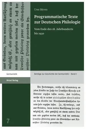 Programmatische Texte zur Deutschen Philologie