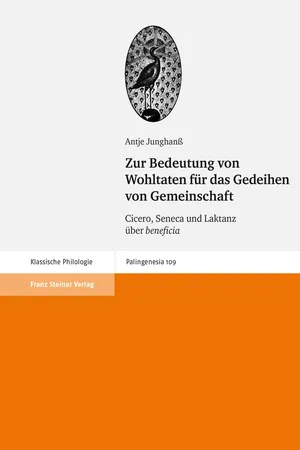 In der römischen Literatur finden sich – wenngleich weniger ausführlich und mit je anderem Fokus – bei Cicero und Laktanz ebenfalls stoisch rückgebundene Annäherungen an die Thematik. Doch wenngleich Cicero, Seneca und Laktanz die Überzeugung der gemeinschaftsstiftenden Kraft von Wohltaten teilen, sind ihre Begründungen, in welcher Weise wohltätiges Verhalten gemeinschaftliches Miteinander befördert, sehr verschieden. Und auch in ihren Vorstellungen, welche Form von Gemeinschaft durch Wohltaten gestiftet bzw. gestärkt wird, unterscheiden sie sich maßgeblich voneinander.