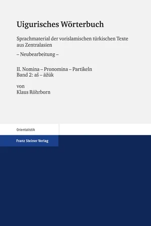 Die uigurischen Königreiche in Zentralasien blühten von der Mitte des 8. Jahrhunderts bis gegen Ende des 14. Jahrhunderts, beeinflusst vom Westen durch den Manichäismus und vom Süden und Osten durch den Buddhismus. Die preussischen Expeditionen vom Anfang des 20. Jahrhunderts brachten die umfangreichen Reste dieser Kultur ans Tageslicht, in den vergangenen 100 Jahren wurde durch die Bemühungen von zahlreichen Forschern die uigurische Literatur ediert, übersetzt und kommentiert. Seit 1977 erscheint auch das Wörterbuch dieser Texte; als Voraussetzung für eine Fortführung dieses Werkes in der Form eines Akademie-Projektes wurde das Material seit 2008 retrodigitalisiert, korrigiert und aktualisiert. Von der Neubearbeitung sind bisher im Druck erschienen: Band I, 1 (Verben von ab- bis äzüglä-) und Band II, 1 (Nomina – Pronomina – Partikeln von a bis asvik). Der vorliegende Band II, 2 enthält die Nomina, Pronomina und Partikeln von aš bis äžük.