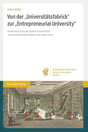 Wettbewerb unter Hochschulen ist seit der Exzellenzinitiative auch in Deutschland in aller Munde. Bei der interuniversitären Konkurrenz handelt es sich jedoch keineswegs um ein neues Phänomen: In einem historischen Längsschnitt von der Spätaufklärung bis in die 1980er Jahre hinein zeichnet Fabian Waßer kompetitive Praktiken deutscher Universitäten nach. Aufbauend auf Georg Simmels triadischem Konkurrenzmodell stehen dabei Fragen nach den am Wettbewerb beteiligten Akteuren, den Prämien der Konkurrenz und den schiedsrichterlichen Instanzen, die über die Verteilung derselben entscheiden, im Vordergrund.