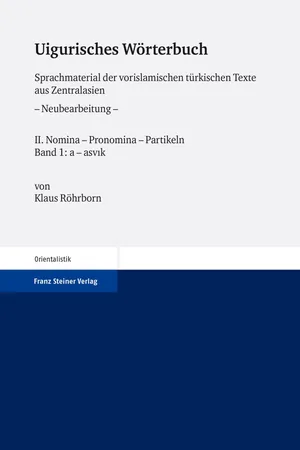 Die uigurischen Königreiche in Zentralasien blühten von der Mitte des 8. Jahrhunderts bis gegen Ende des 14. Jahrhunderts, beeinflusst vom Westen durch den Manichäismus und vom Süden und Osten durch den Buddhismus. Die preussischen Expeditionen vom Anfang des 20. Jahrhunderts brachten die umfangreichen Reste dieser Kultur ans Tageslicht, und in den vergangenen 100 Jahren wurde durch die Bemühungen von zahlreichen Forschern die uigurische Literatur ediert, übersetzt und kommentiert. Seit 1977 erscheint auch das Wörterbuch dieser Texte, und als Voraussetzung für eine Fortführung dieses Werkes in der Form eines Akademie-Projektes wurde das Material seit 2008 retrodigitalisiert, korrigiert und aktualisiert. Im Jahre 2010 erschien der erste Band, der das verbale Wortmaterial von ab- bis äzüglä- enthält. Der vorliegende Band enthält die Nomina, Pronomina und Partikeln von a bis asv?k.