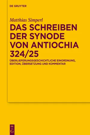 Untersucht wird das Schreiben einer antiochenischen Synode wenige Monate vor dem Konzil von Nizäa (325), das sich ausschließlich in syrischer Übersetzung erhalten hat. Seit der Entdeckung des Textes durch Eduard Schwartz im Jahr 1905 ist seine historische Authentizität umstritten geblieben. Kern des vorliegenden Buchs ist die Neuedition des Textes auf gegenüber bisherigen Ausgaben deutlich erweiterter handschriftlicher Basis. Zur Vorbereitung der Edition wird die Überlieferung des Textes innerhalb der westsyrischen Kirchenrechtsüberlieferung untersucht. Darauf aufbauend legt der Autor einen Vorschlag für die Rekonstruktion der Überlieferung des Textes zwischen dem 4. und 7. Jh. vor, die auf der Untersuchung der Überlieferung vergleichbarer Texte aus dem 4. Jh. fußt, die ebenfalls Teil der westsyrischen Kirchenrechtsüberlieferung geworden sind. In einem ausführlichen Kommentar, der den neu edierten Text unter philologischen, theologie- und kirchengeschichtlichen Gesichtspunkten erschließt, wird die Authentizität des Schreibens verteidigt. Die Ergebnisse des Kommentars erlauben schließlich eine Neubewertung der Ereignisabfolge und -dynamik in den Monaten vor dem Konzil von Nizäa.