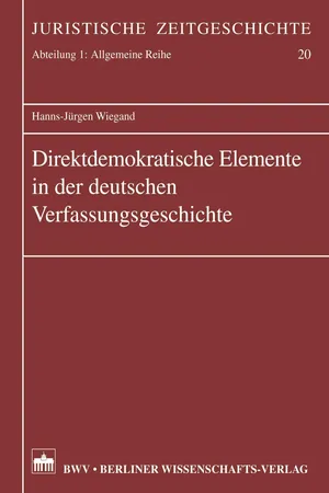 Ja, du hast Zugang zu Direktdemokratische Elemente in der deutschen Verfassungsgeschichte von Hanns-Jürgen Wiegand im PDF- und/oder ePub-Format sowie zu anderen beliebten Büchern aus Jura & Rechtstheorie & -praxis. Aus unserem Katalog stehen dir über 1 Million Bücher zur Verfügung.