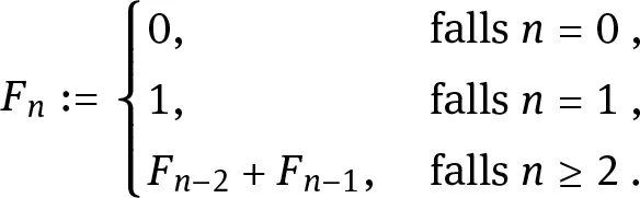 Offensichtlich ist jede Zahl die Summe ihrer beiden Vorgänger, wenn wir 0, 1 als Anfang vorgeben. Die rekursive Definition der Folge (Fn)n∈ℕ sieht bekanntlich so aus: