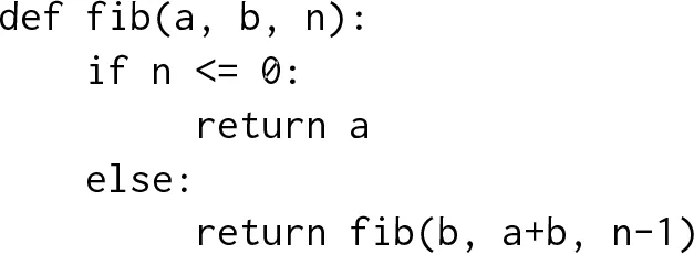 fib(0, 1, n) berechnet wird.Damit können wir eine Funktion definieren, die – wie üblich – mit einem Parameter auskommt, die allerdings