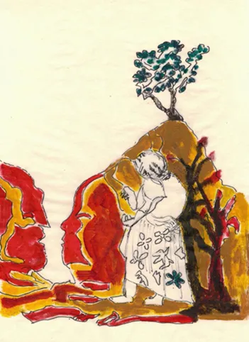 Die Nachmittagssonne der La Mancha brennt auf die Beiden herab. Der Lange, Hagere auf dem Klepper schaukelt vor Erschöpfung im Sattel hin und her. Dem Schein nach apathisch, trottet der kräftig rundliche Mensch auf dem Esel hinter ihm. Urplötzlich nimmt das Grautier Tempo auf, trabt am hochbeinigen Braunen vorbei in Richtung auf den Baum zu, der sich am Horizont vor den Reitern erhebt.