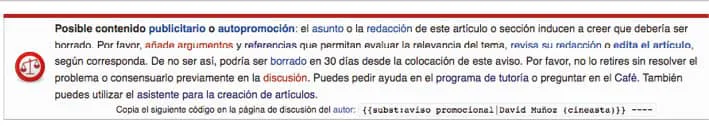 Problema: tu artículo está escrito como si quisieras venderle a alguien tu personaje, tu compañía, tu libro o invento. No hace falta. La mayoría de las veces simplemente relata lo que ha hecho esa persona sin echarle flores. No es el mejor empresario o poeta del mundo, ni tampoco la banda musical indiscutible del momento. Intenta ser lo más aséptico posible, sin utilizar adjetivos calificativos. Se trata de hablar de una persona, una empresa, servicio o institución que destacan, que tienen bastante relevancia y que han aparecido en los medios de comunicación. Simplemente descríbelo tal cual.