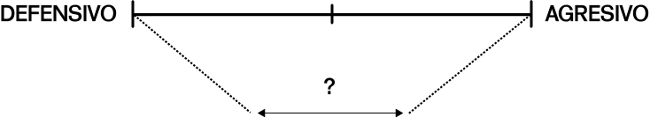 Califícate poniendo un punto a cada característica que coincida contigo. Obtendrás dos resultados: A (defensivo) y B (agresivo). A continuación suma ambas cifras A+B y obtendrás C. Por último divide A/C y multiplica el resultado por 100; así habrás obtenido tu porcentaje de carácter defensivo; haz B/C X 100, para obtener tu porcentaje de carácter agresivo.