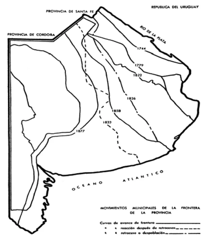 Mapa 1: Avance de la “frontera” en la provincia de Buenos Aires (1744-1877)
