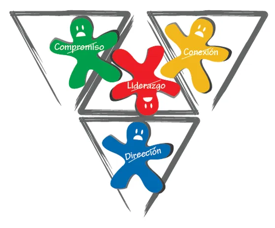 Por esta razón, el objetivo principal de este libro es mostrar a aquellos que forman parte de un equipo o grupo de trabajo, o a aquellos que tienen la fortuna de dirigirlos y liderarlos, un modelo sencillo que permita identificar los elementos fundamentales de un equipo y los pasos necesarios para construirlo. Un modelo denominado «equipos ConLid», donde identifico los cuatro aspectos clave: la conexión, el compromiso, la dirección y el liderazgo. Son los cuatro triángulos esenciales de los equipos, que van desde la conexión hasta el liderazgo.