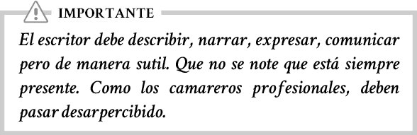 El escritor debe mantenerse al margen de sus escritos para que la atención del lector se centre en las ideas, en el lenguaje, en el discurso y no en el autor. No seremos dogmatizantes ni pontificaremos si deseamos que nos lean y aprendan de nuestras ideas y de nuestra manera de impartirlas.