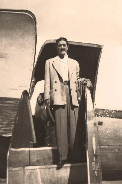 José Albertazzi Avendaño. En la escalinata del avión al regreso de su exilio en 1951.