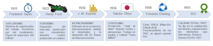 Evolución de las diferentes corrientes en la Industrialización, que suponen el inicio de la Calidad.