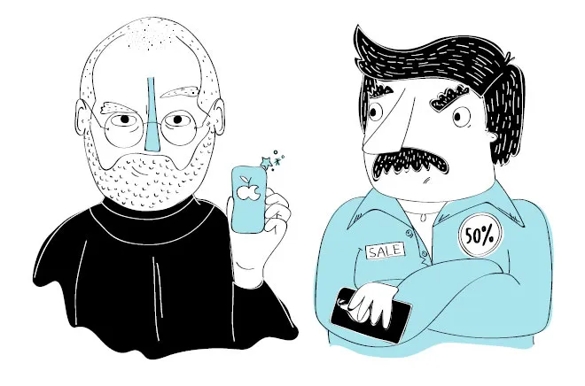 - Vendedor producto-precio. Es el típico vendedor dicharachero que se sabe de memoria todas las características de sus productos y las expone de carrerilla, que tiene una oferta estrella preparada y se la presenta al cliente esperando un SÍ o un NO por respuesta, y que va visitando a sus clientes sin mucha preparación, personalización de la oferta o planificación. Este vendedor solo piensa A CORTO PLAZO y no se molesta en detectar las necesidades reales de sus clientes. Su objetivo es cerrar la operación aquí y ahora y, una vez cerrada, olvidarse de su cliente hasta la siguiente visita. Este perfil comercial sigue siendo muy frecuente en organizaciones del tipo «atraer-vender», orientadas más al producto y con una visión del cliente a corto plazo y muy pobre. Se trata del vendedor que se asienta en su zona de confort y no tiene muchas ganas de cambiar, porque ya le va bien así y hasta ahora le ha funcionado de maravilla.