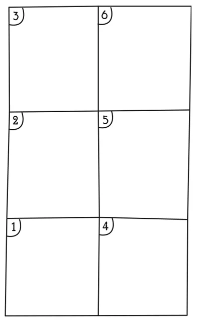 Ahora numera los cuadrados del uno al seis empezando por el inferior izquierdo: