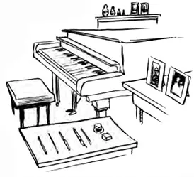 Su rincón favorito siempre fue su estudio, a prueba de sonido para componer al piano (al que le puso sordina para que apenas hiciese ruido) sin que nadie pudiese escucharle a escondidas. En este lugar se rodeaba de sus objetos de valor: regalos, recuerdos, fotos y demás. El piano también estaba cubierto de cosas. Sobre el atril había un tablero donde grapaba los bocetos de las piezas que componía y, a un lado, estaban los utensilios con los que escribía, que brillaban como los instrumentos de un cirujano. Estilográficas, lapiceros, gomas de borrar, sacapuntas, metrónomos, cronómetros. Todo en su sitio, todo a la vista tal y como le gustaba a él.