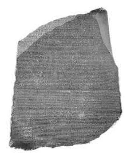 La piedra Rosetta. Estela de granodiorita gris y rosa, erigida el 27 de marzo del 196 A.C. British Museum.