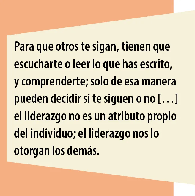 La comunicación es un componente imprescindible del liderazgo, porque para influir en otros debemos compartir nuestra visión, ideas y propuestas (Groves, 2006). No hay un solo líder que haya sido mal comunicador. Para que otros te sigan, tienen que escucharte o leer lo que has escrito, y comprenderte; solo de esa manera pueden decidir si te siguen o no. Si no comprenden tus propuestas, si no comparten tus puntos de vista, es muy difícil que opten por seguirte; y si lo hacen sin comprenderte, será con un alto grado de incertidumbre e inseguridad, con las consecuencias que ello podría acarrear: falta de involucramiento y compromiso, ausencias, retrocesos y hasta boicot soterrado.