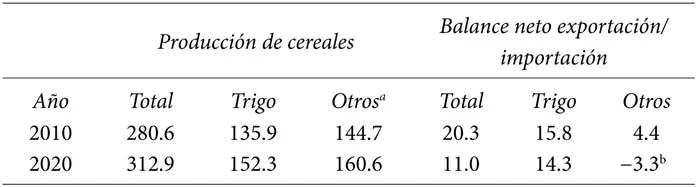 a El maíz se incluye en “Otros”. Su producción en 2010 fue de 58.2 mtm, y se espera alcanzar 67.6 mtm en 2020.