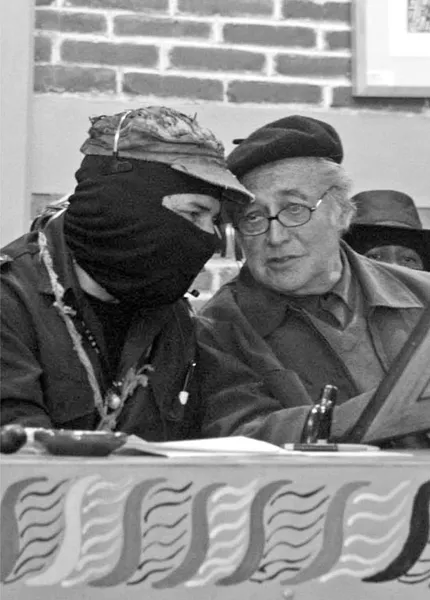 Luis Villoro, acompañado por el Subcomandante Marcos, después de recibir un reconocimiento del Ejército Zapatista de Liberación Nacional en el Festival Mundial de la Digna Rabia. San Cristóbal de Las Casas, Chiapas, 4 de enero de 2009. Foto: Moysés Zúñiga Santiago / CUARTOSCURO.
