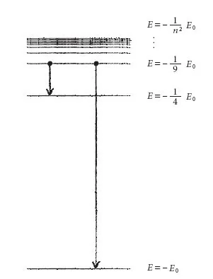 donde E0 es la energía de la órbita básica, y n es un número entero que va desde 1 hasta infinito; es decir, la energía de un electrón es negativa y de magnitud