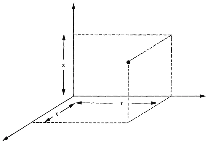 Figura 12. Un sistema de coordenadas permite localizar un punto en el espacio usando tres números: x, y, z.