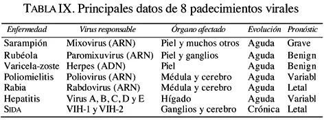 En la Tabla IX se presentan algunos datos de las siete enfermedades producidas por virus que vamos a describir brevemente en este capítulo.