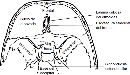 Fosa craneal anterior que incluye la lámina cribosa del etmoides.