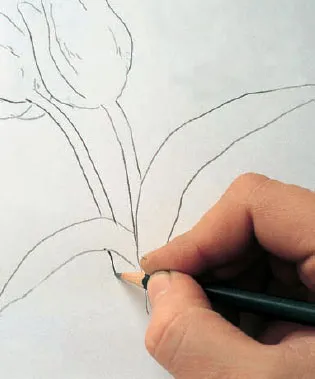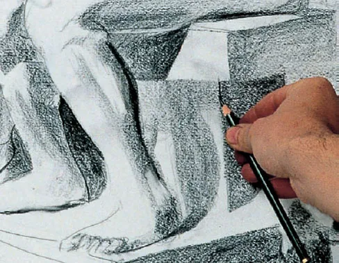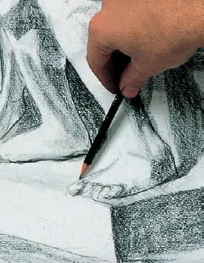 Si sujetamos el lápiz casi desde su extremo, el control de la línea es mínimo, pero puede obtenerse una gran suavidad en el sombreado, ya que la mina apenas roza el papel. Precisamente son sombreados ligeros de este tipo lo que pide esta zona del dibujo.