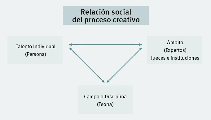 Csikszentmihalyi establece que el proceso creativo es, por naturaleza, polémico, ya que lo establece como una relación entre tres elementos: individuo (personas), ámbito (expertos) y el campo (teoría).