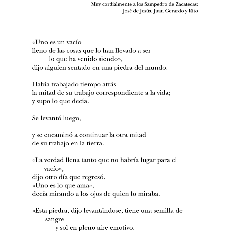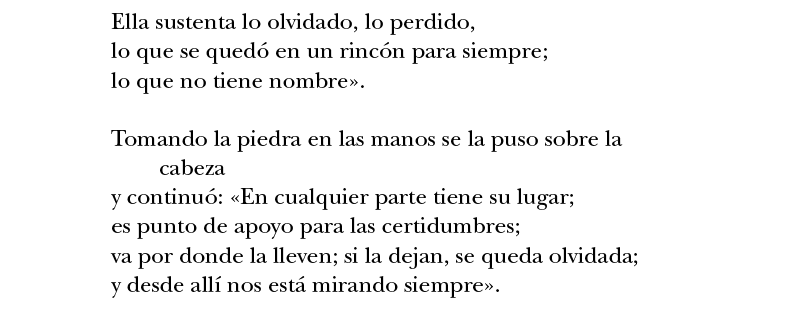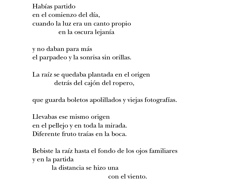 El poeta-forastero regresa a sus orígenes e indaga en los elementos de su camino: es clara la transición de la vereda del campo a la calle asfaltada del paisaje urbano; llega al barrio de su infancia, lo recorre con asombro y rememora su casa, las calles y a sus ancestros campesinos. Aunque la ciudad le provoca extrañeza, le permite también la posibilidad de encontrarse a sí mismo o a alguien con sus mismas cualidades al doblar cualquier esquina o al subir a un autobús: "Más acá / te espera alguien / lleno de ti / para recibirte".El visitante está solo, pero acompañado de otros forasteros; está en el presente, pero siempre regresa en el tiempo; y aboga por la cotidianidad, pero al mismo tiempo enaltece el instante poético que se encuentra en el día a día y que muchas veces escapa al ojo común.