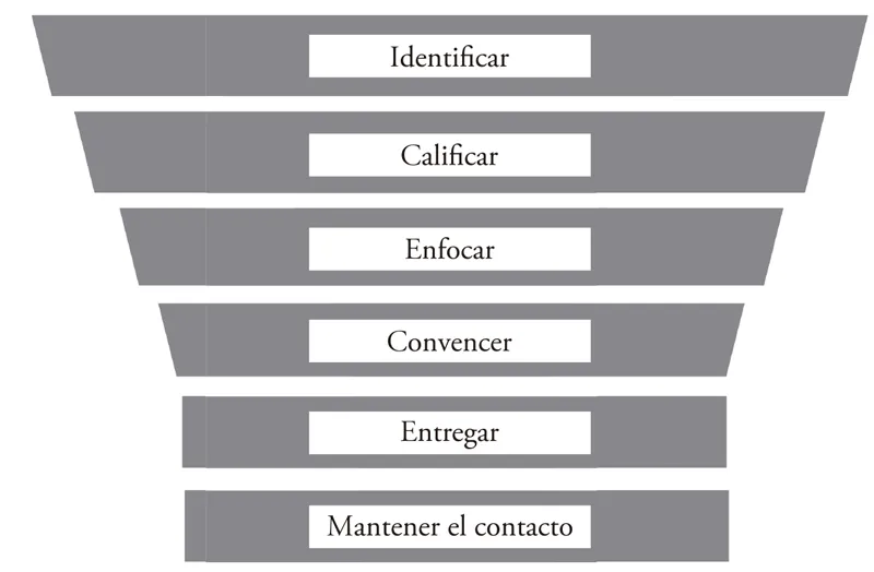 En los capítulos anteriores hablamos acerca de la manera en que los emprendedores pueden identificar a su público objetivo y evaluar si su idea o producto satisface una necesidad de ese mercado. El siguiente paso es involucrar a los stakeholders, demostrar el valor de lo que el emprendedor ofrece y conseguir buy-ins. Esta es la primera fase del proceso de participación, en el que los emprendedores abordan a sus clientes potenciales y dan seguimiento a aquellos que muestran interés. Es el momento de hacer llamadas (en breve explicaremos la diferencia entre llamadas frías y calientes), gestionar a los gatekeepers, concertar citas y reuniones (presenciales, en línea, por teléfono) y, finalmente, conversar con los prospectos y proponerles tu idea. Es un proceso que requiere mucho tiempo y está lleno de sorpresas, objeciones y múltiples desafíos (más adelante también abordaremos a detalle este punto). Si bien la naturaleza de este compromiso dependerá de las partes y productos involucrados, podemos desglosar el proceso general en algo que nos gusta llamar las «Seis fases del sí» (figura 4.1).